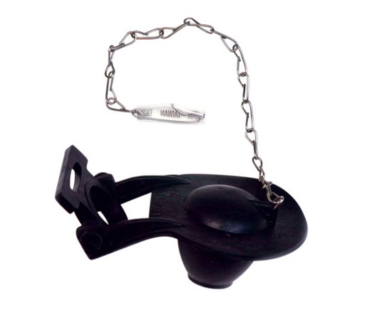 The black rubber universal replacement flapper by Master Plumber is equipped with a chain and a hook. It fits most flush valves.