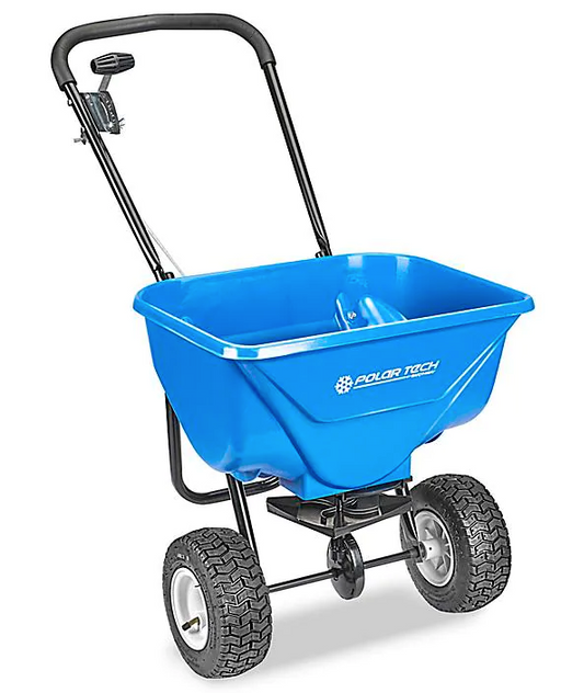 Spread ice melt, sand or rock salt with no clogging. The rustproof plastic hopper holds up to 65 lbs. Adjustable flow rate controls the amount of i...