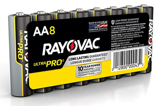 One 8-pack of aa alkaline batteries. Long-Lasting mercury-free alkaline formula with a 10-year freshness guarantee. Conveniently shrink-wrapped to ...